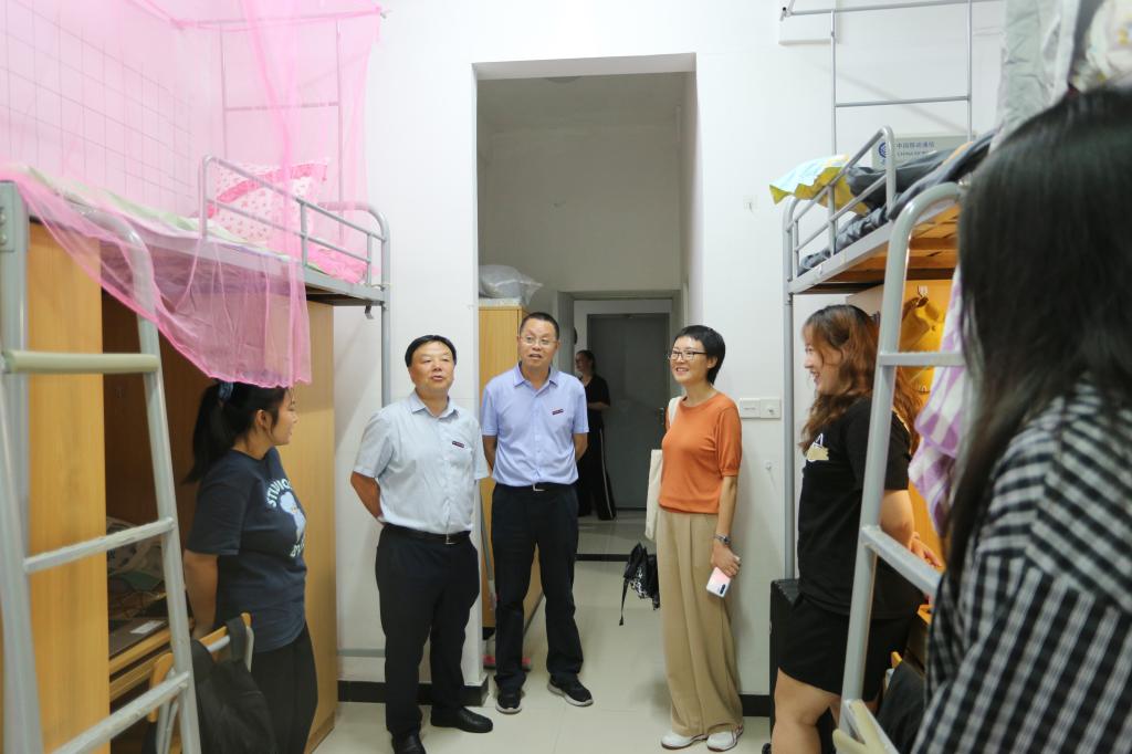 学院领导分别走访了早湖园新生公寓。在走访寝室时,学院领导与新同学们亲切交流,仔细询问同学们的家庭状况、入学报到情况和对校园环境的适应情况等,表示学院会尽一切努力为同学们提供安全有序、整洁舒适、文明和谐的学习生活环境。他们鼓励新同学提早做好大学四年的学习规划和职业生涯规划,夯实专业基础,营造和谐的寝室氛围,相互团结,相互照顾,相互包容,在新的大学生活里共同进步。