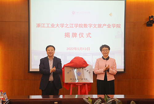 会上,陈勤与姜少飞共同为浙江工业大学之江学院数字文旅产业学院揭牌。