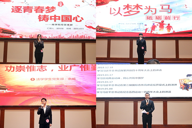 为纪念五四运动100周年,喜迎中华人民共和国建国70周年,献礼学院本科办学20周年,6月2日晚,学院在行健楼117报告厅举行第八届学生党支部风采大赛暨“党建之星”评选活动。学院党委书记郑雅萍,组织人事部、学工部、团委等职能部门相关负责人,各二级学院党建辅导员,党员之家、研习会、各学生党支部代表共计300余人参加了活动。学院大学生习近平新时代中国特色社会主义思想研习会指导老师、思政部教师朱敏忠等担任比赛评委。