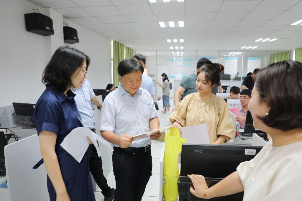 在录取工作现场,姜少飞听取了2022年招生工作进展情况的汇报,仔细询问了各二级学院、各专业的生源情况,并向奋战在招生录取现场的工作人员表示亲切的慰问和诚挚的感谢,并要求录取工作人员牢固树立责任意识,严肃工作纪律,严守每一个录取环节,确保公平公正、规范精准、高效有序完成招生录取工作。