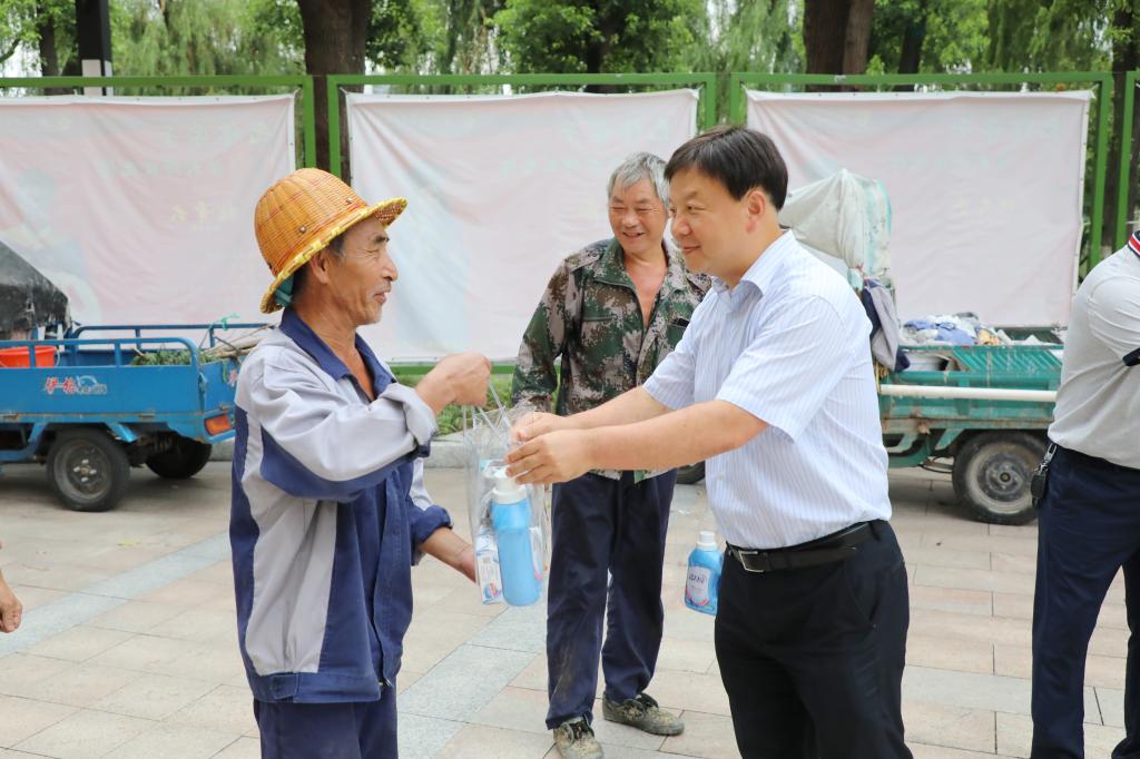 姜少飞先后来到东大门、监控室、食堂、学生公寓等地,与工作人员们亲切交谈,并关切地询问大家的生活和工作情况,对大家在高温天依然坚守在各自工作岗位上,展现高度的工作责任心和扎实认真的工作态度给予了充分肯定,并叮嘱大家要注意防暑降温,劳逸结合、保重身体。大家纷纷表示将以更加饱满的精神状态和更加细致的工作态度努力做好各项工作,确保暑期校园和谐安全稳定。
