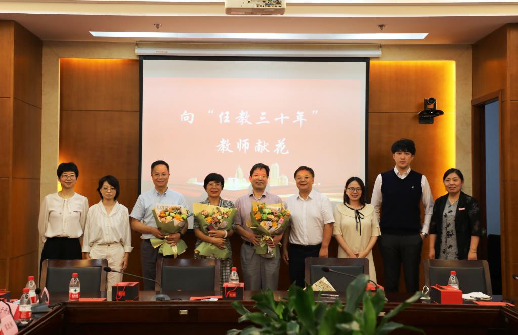 培训期间,在学院“任教三十年”教师代表杨友东带领下举行了新教师宣誓仪式。会上,新教师代表向“任教三十年”教师献花。