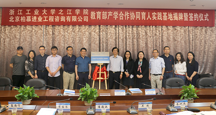 4月24日,我院与北京柏慕进业工程咨询有限公司(以下简称“北京柏慕”)的教育部产学合作协同育人项目合作签约仪式在之江学院行健楼111举行。 学院副院长潘海涵、北京柏慕副总裁廖江宏、浙江地区区域经理王威及教务部、创新创业学院、建筑学院等有关负责人和师生代表参加了揭牌签约仪式。