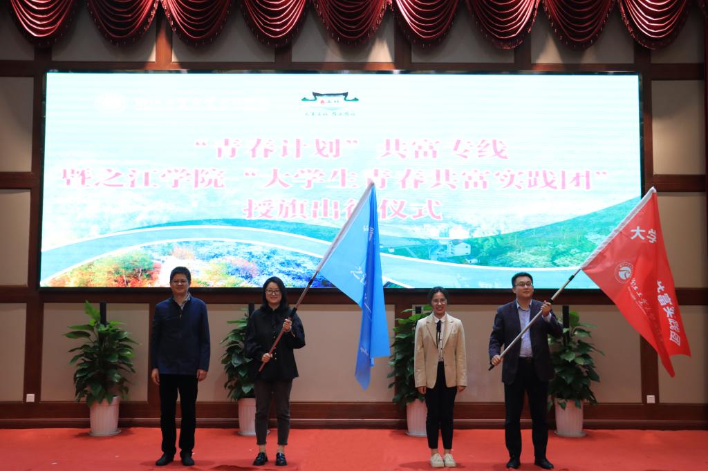 开通仪式上还进行了“青春计划”共富专线暨之江学院“大学生青春共富实践团”授旗出征仪式和“青春计划”共富专线车辆钥匙交接仪式。仪式结束后,“青春计划”共富专线载着“大学生青春共富实践团”的学子们从学院首发。