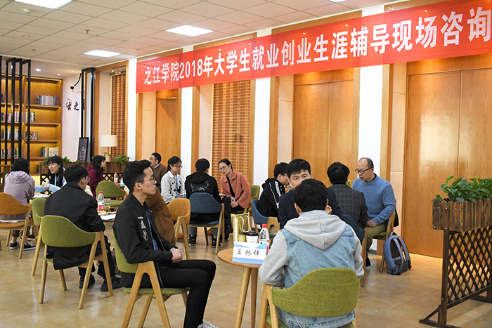 学院同步开展了“大学生就业创业生涯辅导现场咨询会”招聘会专场。此次咨询会邀请了杭州市焦点解决(SFBT)生涯咨询技术工作坊导师、“师友计划”导师、职业规划和发展专家、资深心理咨询师,共6名专家一起组成咨询团队“坐堂会诊”,对大学生职业生涯规划、择业困惑、就业心理调适和创业难点等问题答疑解惑。专家们在给出解答建议的同时,发现相比薪酬,97后毕业生更加注重职业价值观、企业文化等软性要素,反应了当代大学生关于就业创业等个人发展问题有更为成熟的思维和想法。此次咨询活动,共吸引了200余名学生到场咨询,因预约名额有限,不少学生现场排起长龙。咨询学生表示,和导师的交流有茅塞顿开之感,不仅开阔了思路,也明确了自己未来的就业方向,受益匪浅。