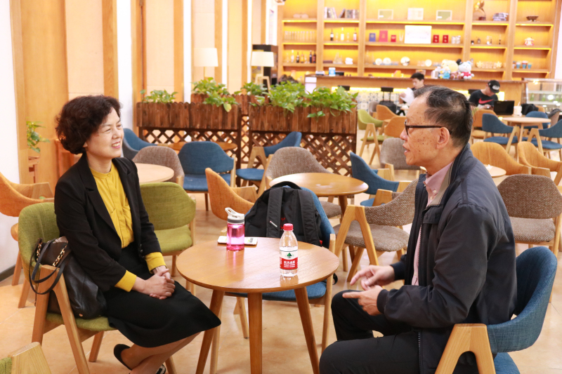 讲座前,学院党委书记郑雅萍与刘建国进行了交流。
