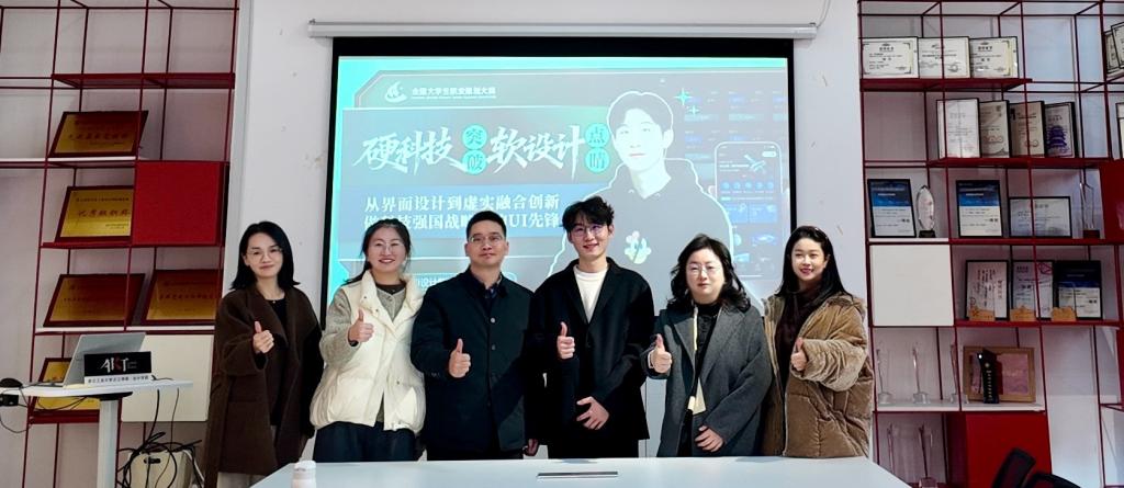 12月19日,第三届全国大学生职业规划大赛(浙江赛区)暨第十六届浙江省大学生职业规划大赛决赛圆满落幕。我院设计学院黄辰斌同学的项目《从界面设计到虚实融合创新,做科技强国战略下的UI先锋》(指导老师:邵燕燕等)获得银奖。学院党委副书记王绍让在就业工作部相关负责人陪同下对参赛选手和指导教师进行亲切慰问。