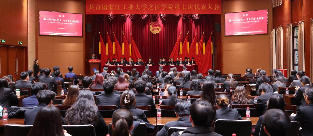 大会听取了学院团委书记庞旭方代表共青团浙江工业大学之江学院第六届委员会所作的题为《凝心铸魂跟党走 青春聚力谱新篇 为建设区域特色鲜明的一流的应用型大学贡献青春力量》的工作报告。报告全面总结了学院第六次团代会以来学院共青团在思想引领、科创实践、文化培育、志愿服务、组织建设等方面取得的显著成就与宝贵经验,并系统阐述了未来五年的工作思路与主要任务:聚焦为党育人、为国育才核心使命,着力实施“青春铸魂”“青春赋能”“青春润心”“青春力行”“青春强基”五大行动,全面构建引领有力、服务精准、组织坚实、特色鲜明的工作新格局,团结带领全院团员青年为学院加快建设区域特色鲜明的一流的应用型大学贡献青春力量。