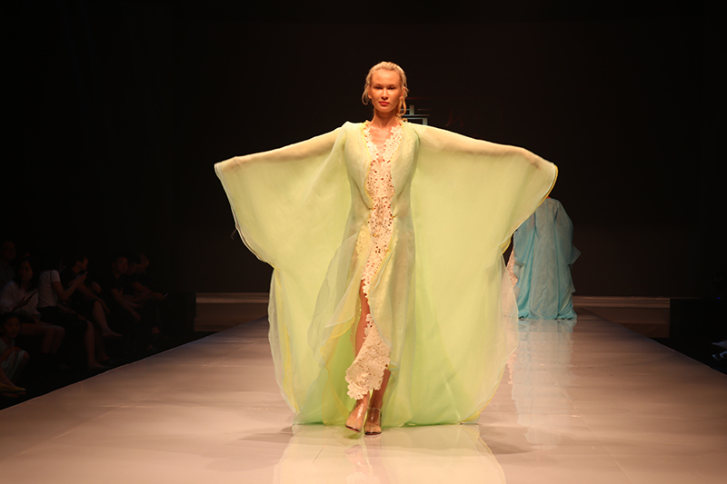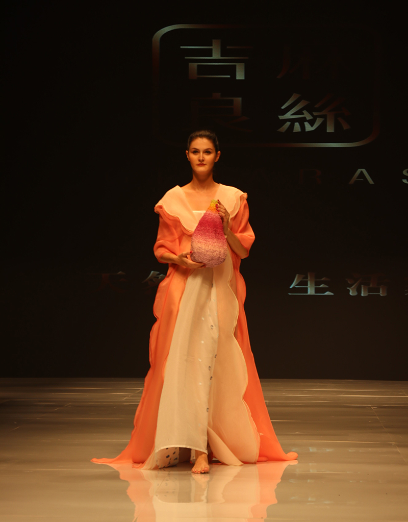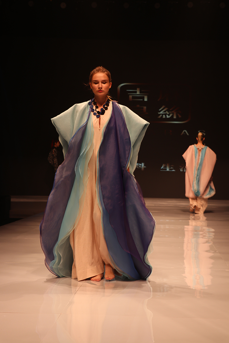 对于此次时装秀的创作灵感,裘海索教授表述:“吉麻以其柔劲的良丝纤骨在岁月中编织着亘古不变的对生活的眷恋,在片片的织语里道出了花朵般生命的定律,在迷雾的飘零中看到大地温床的墩实,在轻盈的呼吸中感受到钢铁般的意志;“吉麻良丝”每一次的御风而行都禀赋着大地生命的肌理,这一次馈赠予人们的又会是一次吉麻对良丝格物的呈现……”围绕这个主题,裘教授以花、风、山水为主要元素进行了创作,其作品面料全部在柯桥当地定制和购买。