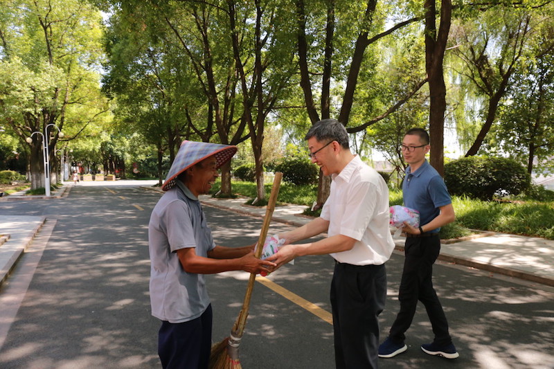 7月20日,学院院长李澎林、党委书记郑雅萍在相关职能部门负责人的陪同下,亲切看望和慰问了在暑期一线辛勤工作的教职工。