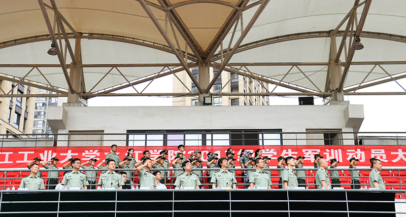 7月6日上午,浙江工业大学之江学院2017级学生军训动员大会在田径场举行。学院党委副书记黄新敏,军训团团长、学院副院长潘海涵,驻训部队东部战区海防旅梁伟轩上尉出席了本次动员大会。体军部主任、军训团副团长主持大会。学校办公室、团委、保卫部、信息与资产管理部、后勤服务与经营发展中心、教务部的负责人以及各二级学院学生工作负责人、辅导员和所有参训学生参加大会。