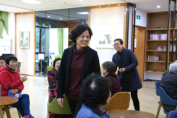 郑雅萍与退休老同志亲切交谈