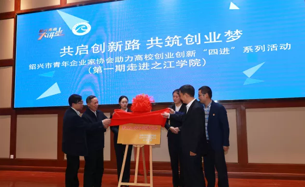▲ 陈东琪、张亚波、魏张弦、黄新敏为之江学院教育基地揭牌