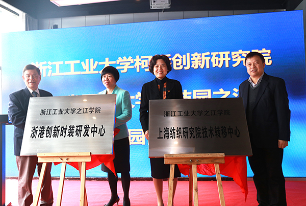 祝静芝、郑雅萍为浙港创新时装研发中心、上海纺织研究院技术转移中心揭牌