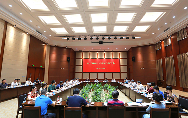 2017年8月28-29日,浙江省高校纪委落实省纪委执纪监督发现问题整改工作部署会在我校举行,省委教育工委委员、省纪委(省监委)派驻教育厅纪检监察组组长郭丽华出席会议并讲话。省纪委(省监委)派驻教育厅纪检监察组副组长朱金中、黄根来以及20所本科高校纪委负责人参加了会议。会议由朱金中主持。