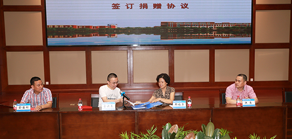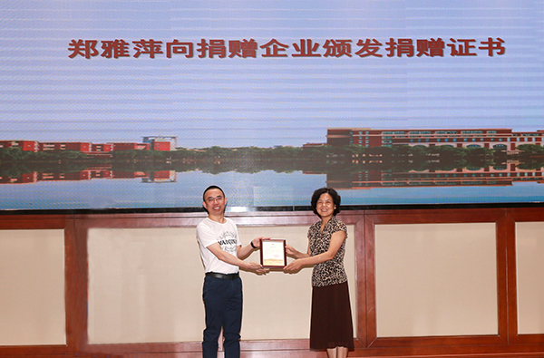 仪式上,郑雅萍与金晓春签订了捐赠协议,郑雅萍为捐赠企业颁发了捐赠证书,并现场举行了剪彩仪式。仪式结束后,与会人员乘坐新能源绿色环保电动车游览了校园。
