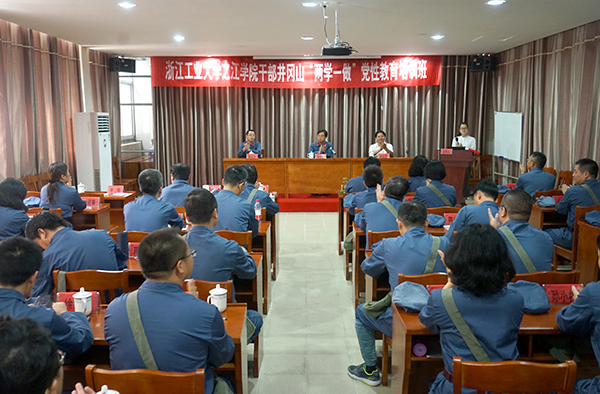 井冈山革命传统教育研究院副院长郝立志对之江学院的参训干部表示欢迎并预祝本次培训获得圆满成功,陈金友和郝立志共同向培训班班委进行授旗。