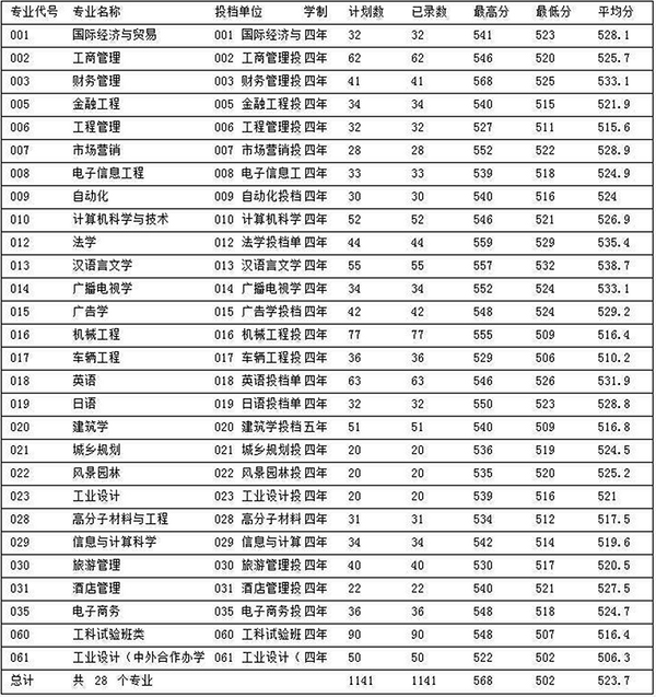 近日,我院顺利完成了2017年浙江省普通类招生录取工作。今年,我院浙江省普通类招生计划1141人,实际录取1141人,第二段录取完成全部计划。专业录取投档分最高分532分(汉语言文学专业),最低分502分(工业设计中外合作办学专业),所有专业录取平均分523.7分。