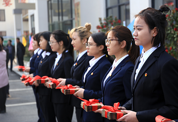授旗出征仪式上,何加顺为理论和宣讲工作者代表郑雅萍授旗。
