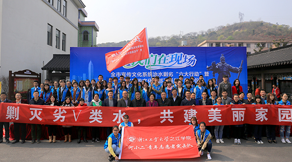 4月1日, “我们在现场”——绍兴市宣传文化系统治水剿劣“六大行动”暨“千名宣传文化干部下基层”启动仪式在柯桥区安昌镇西扆村文化礼堂广场举行。绍兴市委常委、宣传部长何加顺,副市长丁晓燕,市区县(市)、新闻工作者、文艺工作者、理论和宣讲工作者、志愿者代表等500余人参加仪式。我院党委书记郑雅萍、师生党员代表、学生志愿者等100余人参加了仪式。