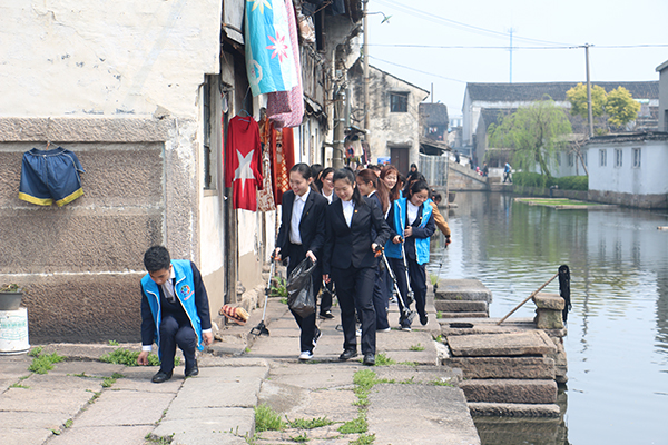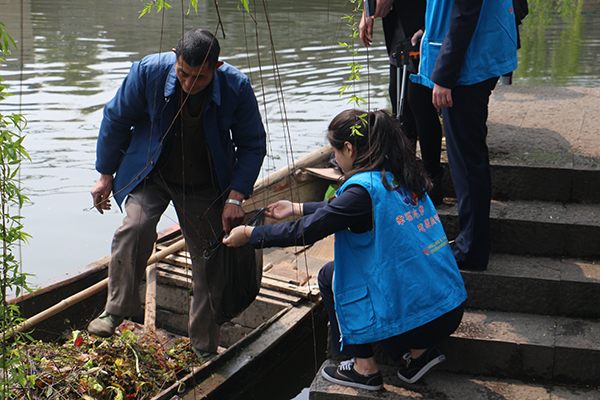 仪式后我院党员干部赴安昌镇国际村开展敬水、护水、爱水宣讲,实地考察河道水质。100名大学生志愿者组成“河小二”青年志愿者突击队,兵分两路赴安昌古镇景区和大山西村开展“剿灭劣Ⅴ类水”志愿服务专项行动。活动中,安昌古镇小分队的志愿者们巡河护河,走上船只打捞河污,随手拍、随手捡、随手护,呼吁景区游客从日常小事做起,保护水环境,节约水资源,做“治水剿劣”的宣传者、实践者、参与者。大山西村小分队的志愿者们手握铁钳捡拾生活垃圾,挨家挨户发放治水宣传画册,向沿河的居民宣传环保知识,积极倡导“五水共治”,共同剿灭劣Ⅴ类水。