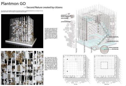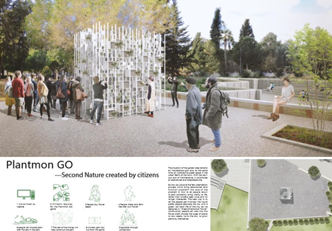 本次赛事,由欧洲文化之都帕福斯(Pafos)2017组委会举办,题为“第二自然(SECOND NATURE)”。该赛事邀请国际建筑师协会(UIA) 会员国的专业建筑师、艺术家、设计师和建筑学校的学生在帕福斯中心的市政花园中设计和建造一个轻型、小尺度的结构装置。竞赛要求设计作品的结构选材是如木材、金属、金属丝、铝等轻质材料,而不是如混凝土、石头一样的沉重材料。结构总的外观尺寸不会超过 9平方米,最大高度在 3.5 米以内。另外要考虑其安装拆卸方便,最好能够在拆卸之后不在花园内留下任何痕迹,以免对花园造成不可逆转的影响。此次竞赛共收到了来自16个国家的57份参赛作品。杨洲、何逸文设计团队设计的名为”Plantmon GO”的设计方案被选为七个优秀方案之一。