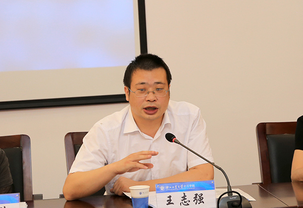 王志强向专家组介绍了柯桥区基本情况以及之江学院新校园的建设历程,并就柯桥区政府共建之江学院所做的工作作了汇报,表示柯桥区政府将一如既往的关心和支持学院的建设和发展,为学院办学和发展创造优良环境。