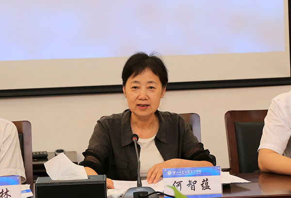 何智蕴代表学校致辞,对省教育厅多年来的关心支持表示感谢,对各位专家的到来表示欢迎,并向专家组介绍了学校情况和之江学院规范设置工作总体情况,表示学校将以此次考察验收为契机,全力支持之江学院的规范发展、内涵发展和可持续发展,希望省教育厅和各位专家今后能继续关心、支持学院的建设和发展。