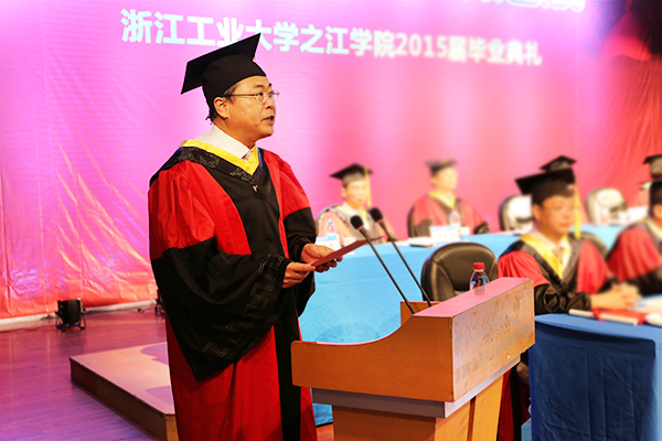 学院院长计建炳在典礼上致辞,向顺利完成学业的毕业生们表示了热烈的祝贺和美好的祝愿,向精心培养同学们成才的家长们、老师们表示崇高的敬意和诚挚的感谢,并对毕业生们提出了三点希望:第一,做一个不抱怨的人,要有高尚的人生目标,有自己追求的事业,做事不以功名利禄为出发点,与正能量同行;第二,做一个行动正确的人,要有理想,并通过正确行动实现理想;第三,做一个精益求精的人,树立终身学习的思想,养成注重细节的习惯,以积极主动的精神、做实做细的态度“做好”事情。最后,他衷心希望毕业生们能心系母校,常回母校看看。