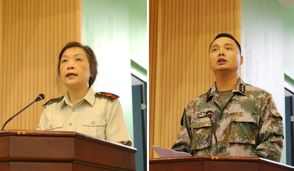 驻训首长葛利锋上尉做了发言。他表示,全体教官将按照军训要求,文明施训,因人施训,严格管理,确保军训效果,一定完成训练任务;他希望同学们服从管理,遵守军训的纪律和规定,做好吃苦的准备,发扬奋力拼搏、团结友爱、互帮互助的协作精神,以饱满的热情投入到军训中去。