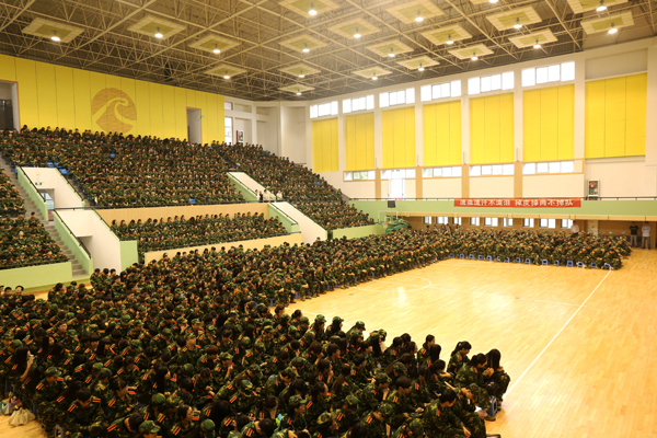 7月8日上午,2014级学生军训动员大会在绍兴校园体育馆举行。学院党委书记郑雅萍,副院长王薇、王河江,党委副书记黄新敏,副院长王连邦,驻训首长葛利锋上尉,学院学生军训领导小组成员,各二级学院负责军训工作的辅导员等出席大会。大会由黄新敏主持。