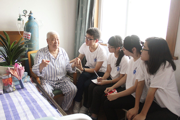 由于王老年事已高,加上身体病情较重,队员们没能聆听老人完整的抗战故事。但大家从王老外甥女处得知,王老也是16岁就参加革命了,并在1941年加入了新四军一旅三团东台独立团。王老一向生活俭朴,1990年从杭州船舶工业学校退休后,但凡有身体病痛,他都能忍则忍,一般情况下都不愿住院检查,能少开的药他也总是提醒医生要少开、不浪费。若不是这次病情严重,王老执意坚持不住院治疗。作为一名抗战老兵,他一直感恩国家对自己的照顾,也感谢学院对他的关心。令队员们印象尤为深刻的是:即使卧病在床,老人的床头上依然堆放着厚厚的一叠报纸,这是他多年来养成的读书习惯。在与王老交流的一个多小时里,他一直双手合十,不停地说着“谢谢,非常感谢。”队员们了解到,王老一向为人谦虚低调,他从来不在家人面前过多提及那一段抗战的历史,唯有勤俭朴素的生活作风一直沿袭至今,影响着他们家里的所有人,成为家中一笔宝贵的精神财富。