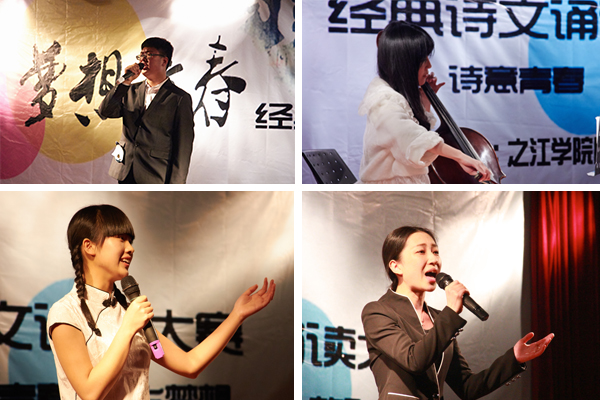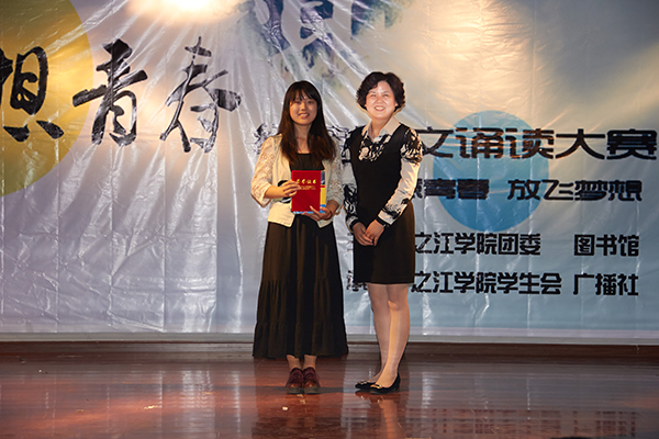 4月25日,由学院团委、图书馆和人文学院联合主办的首届“梦想青春”经典诗文诵读大赛在绍兴校园师生活动中心报告厅举行。学院党委书记郑雅萍,共青团柯桥区委书记孙洁、副书记金剑栋,学生处(团委)负责人、图书馆负责人、人文学院负责人、辅导员及师生代表共250余人观看了比赛。柯桥区文化发展中心干部孙昌隆,柯桥区广播电视总台节目主持人孙梅,学院图书馆馆长罗志尧、人文学院院长赖骞宇、建筑学院院长蒋山等担任评委。