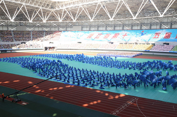 为了这短短两分钟的开场,900名表演志愿者和近100名后勤服务志愿者整整花了两个月参与训练。在这短暂而又漫长的两个月里,有欢笑,有汗水,有艰难,也有喜悦,而这一切,只为在10月18日省运会开幕式的那一天,让他们的青春与省运会一同盛大开场。