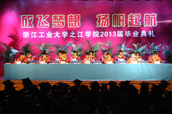 梅新林、张立彬与学院领导一起为优秀毕业生代表、优秀毕业设计(论文)获得者代表颁发了荣誉证书,向2013届毕业生代表、毕业生中的之江“先锋学子”授予学士学位,并于典礼结束后与毕业生们合影留念。