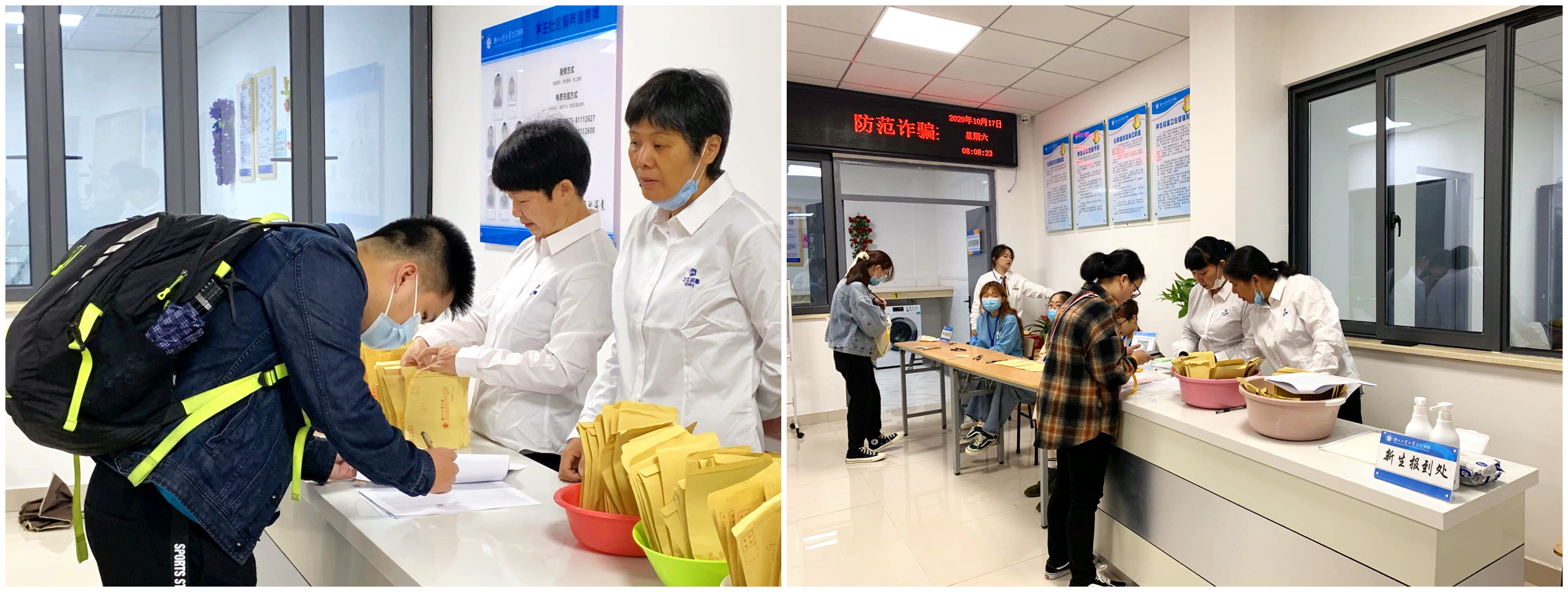 寒露时分,秋韵渐浓,来自五湖四海的莘莘学子怀揣着对青春与梦想的憧憬,迈入浙江工业大学之江学院,这一场美丽的相遇,成为了校园里夺目的风景线。疫情防控下的首个迎新季,为了更周到、更高效地服务2020级新生,后勤服务中心高度重视,按照学院迎新工作统一部署,精心谋划、认真落实各项服务保障工作,圆满完成了此次迎新工作。