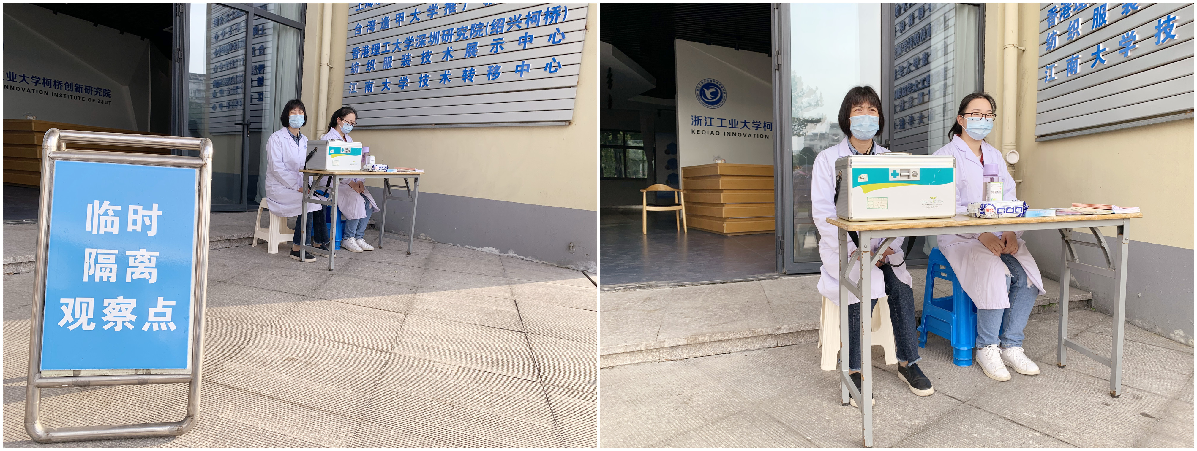 图:医务室的医生和护士在临时隔离观察点