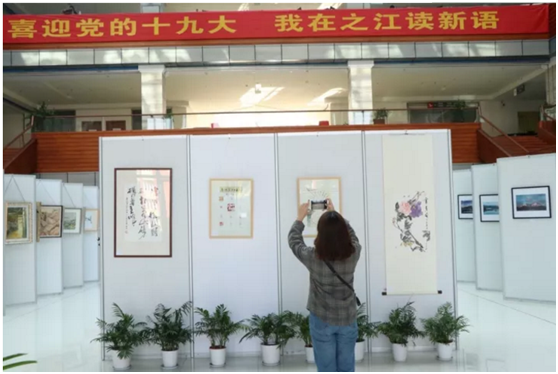本次展出由院工会、组织人事部等单位共同发起,是学院党委组织全院师生开展“喜迎党的十九大我在之江读新语”的系列活动之一,以凝聚广大师生听党话、跟党走、感党恩。