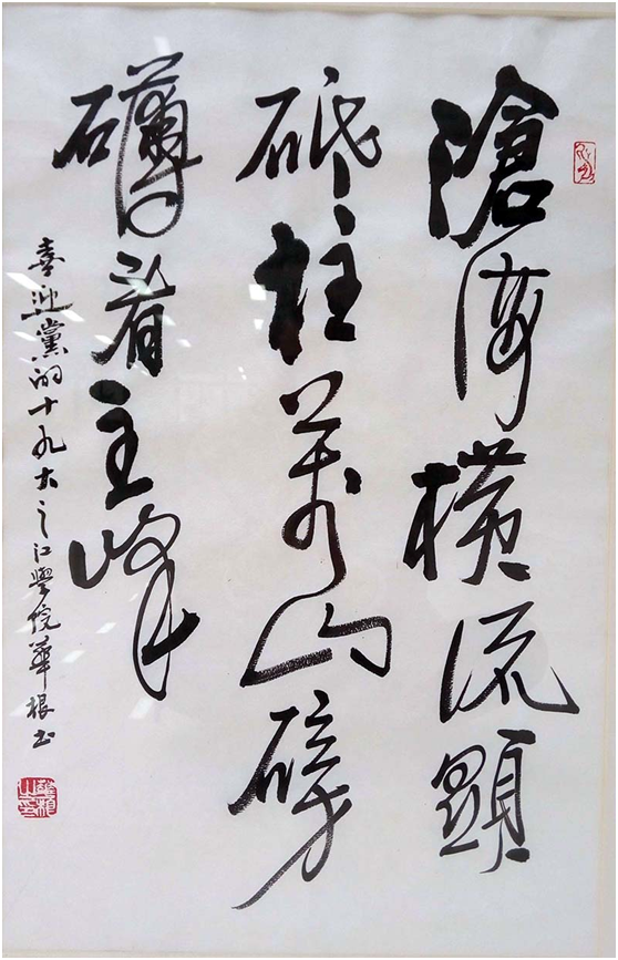 “水秀生灵气,波碧生明辉”,建筑1602级的陶孙奇一幅行书作品写得飘逸潇洒,表达了对浙江五水共治成果的深厚感情。