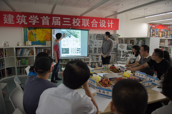 评图当天,三校学生就自己的设计成果作了精彩答辩,评委老师也纷纷从不同角度对方案作出点评。席间师生们气氛活跃,不断擦出思维碰撞的火花。这种校校联合设计的方式,有效促进了师生间的相互学习与教学交流,营造了良好的教学氛围。同时,对建筑学院低年级学生的专业学习起到了很好的引导与熏陶。