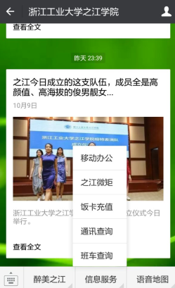 1、打开微信关注浙江工业大学之江学院微信公众号